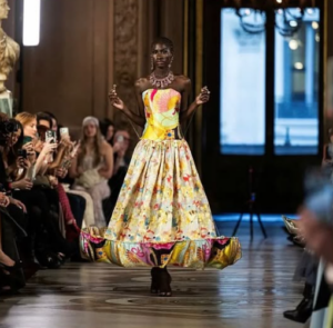 His new set in Paris consisted of 15 different appeals. The designs were based on nature and flowers. Max said that approximately 90 percent of the materials that he used were sustainable. He used old cloth and materials as well as unused ones to make something new and beautiful with recycled materials.