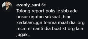 One commenter urged him to report the case directly to the police. The commenter said the remarks contained elements of sexual harassment and warned that such behaviour could easily be repeated against others if left unchecked.