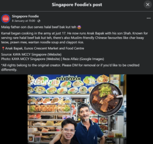 Anak Bapak, a Muslim-owned stall at Eunos Crescent Market and Food Centre, serves a halal version of the iconic dish using beef instead of pork. Long before social media attention arrived, the father-and-son operation had already built a steady following across races, faiths and generations.