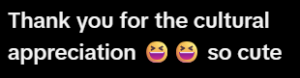 “Thank you for the cultural appreciation 😆😆 so cute”
