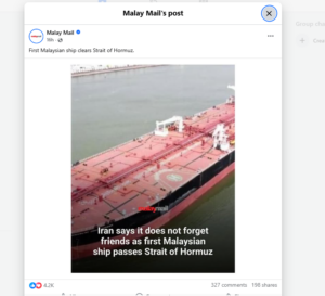 Amid the tense situation in the Middle East, there is some good news for Malaysia. Wisma Putra said that one of the seven ships it owns that were stuck in the Strait of Hormuz has safely departed and is heading towards its destination. This development came as a result of high-level diplomatic talks.