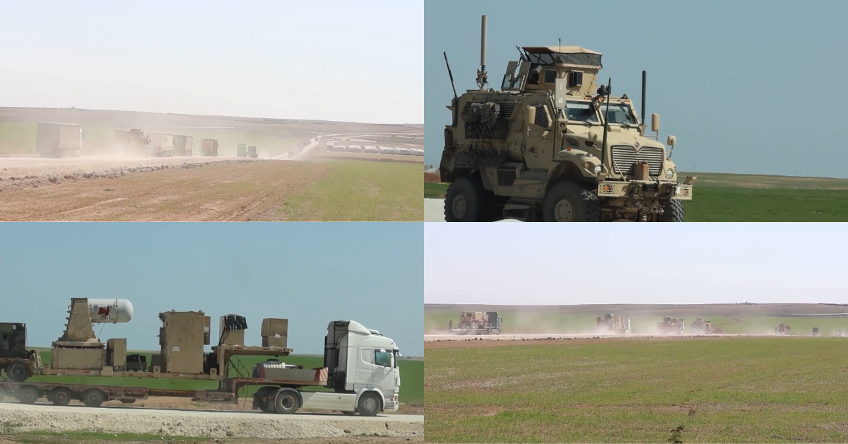 The video shows the convoy moving along the M4 highway south of the city of Qamishli in the countryside of Hasakah governorate, heading towards the Qasrak base.