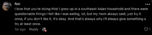 Others shared their experiences and said that when children try new foods, it creates a positive habit.