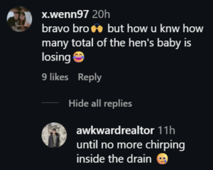 Another asked how Zameer was sure there were no chicks left in the drain.