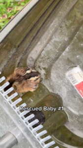 Curious and concerned, he decided to investigate, discovering several chicks trapped inside the drain.