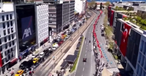 Footage shows Erdogan, accompanied by F1 representatives and government officials, marking the launch of the racetrack while fans lined the circuit as a Red Bull car powered down the street. The Turkish president was also presented with a commemorative Formula One steering wheel during the event.