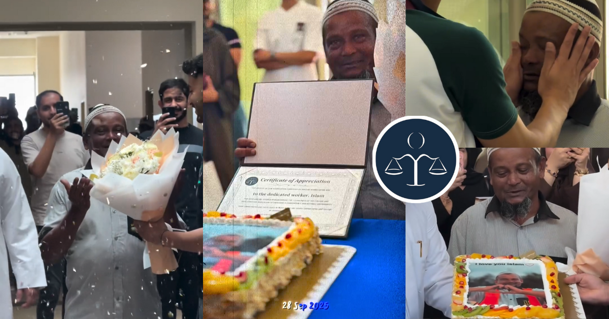 A video of the farewell, shared by @/lawsociety.uob on Instagram, showed Islam becoming visibly emotional as students applauded and thanked him for his contributions. The event, organised by the Law School Society, was described as a celebration of a man who “was not just a worker, but a soul who brought joy to every corner of the College.”