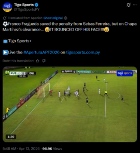 The unexpected goal left players from both teams surprised. Ferreira did not celebrate and only showed a brief reaction as teammates came to congratulate him. Meanwhile, Rubio Ñu players gathered around Martínez, who looked disappointed after the unlucky moment.