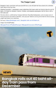 He added that just as the previous 20 baht flat fare scheme was popular, the new daily pass plan will also bring real relief to citizens’ lives.