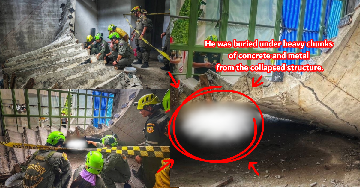 According to his shocked colleagues, Sarawut was involved in the process of removing the temporary support beams, known as formwork, from the staircase. This is a standard step done after concrete has been poured and has had enough time to harden and gain strength.