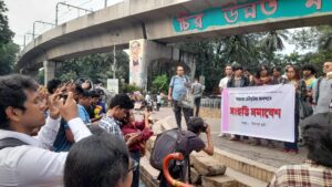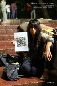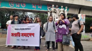 A solidarity rally was held on 11 October at Dhaka University’s Raju Vaskorjo in support of Sahara Chowdhury Rebel. The gathering brought together student organisations, feminist collectives, teachers, and human rights activists.