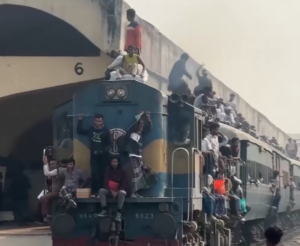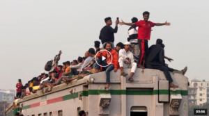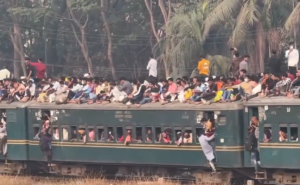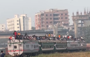 Over the past week, people have been leaving Dhaka for their villages to vote, but the rush intensified as trains pulled into the platforms. Thousands surged forward to board, while others risked their lives by climbing onto the roof after failing to secure seats inside.