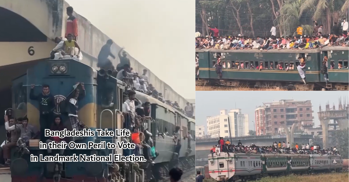Over the past week, people have been leaving Dhaka for their villages to vote, but the rush intensified as trains pulled into the platforms. Thousands surged forward to board, while others risked their lives by climbing onto the roof after failing to secure seats inside.