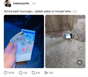 In the video, every bird is seen to be carrying a folded RM50 bill in their hands as they walk the ground. This scene immediately attracted attention due to the fact that it was something strange and surprising.