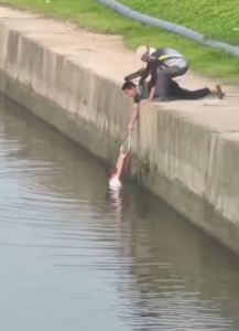Brave Rescuer Saves Drowning Child After A Bicycle Accident in a Deep Canal