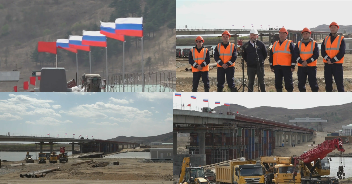 The span for the first-ever road link between Russia and the DPRK was seen completed on Tuesday, crossing over the Tumeт River between the countries.