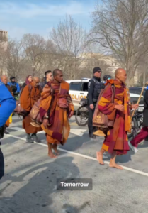 For four months, they moved forward step by step. Some days they walked barefoot. Other days they crossed snowy roads during freezing weather. The Buddhist monks said their goal was to share mindfulness and encourage peace across communities. As they entered Washington, DC, supporters gathered along the streets to watch the final steps of the long journey.