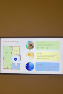 The room has four distinct zones. Upon entering, passengers are greeted by a neutral and calm environment. There is also a virtual Changi Experience Ambassador, who will provide assistance if needed. Each zone has been designed with different types of sensory needs in mind.