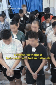 The operation, ordered by Prime Minister Hun Sen, seized a large amount of electronic equipment and databases. Among those detained were Chinese, Vietnamese, Indonesian and Indian citizens.