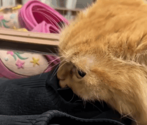 In the video, the cat can be seen carefully approaching a pair of sneakers, sniffing them, and then lying down beside them as if they were its new treasure. The owner, recording from a distance, can be heard whispering in disbelief, “That’s not even our shoes!”