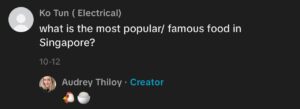 A few poked fun at her clucking — apparently closer to a turkey call — while another user asked about Singapore’s most famous food.