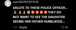 The child turned back to her father and was still uncertain of what was going on. The suspect remained silent but did not resist. The officers gave him time to say a short goodbye.