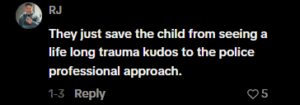 “You should go home with your grandpa.” His voice remained calm, and his body language showed no threat. According to a video, the officers avoided sudden movements. They stood in a relaxed way so the child would not panic.