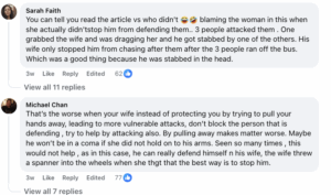 Some expressed anger, saying that many people were blaming his wife without understanding the whole incident. Others thought that Zhou could not fight back when he was injured in front of three attackers – this is normal.
