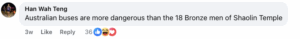 Many commented that the Australian bus was more dangerous than the bronze warriors of the Shaolin Temple.