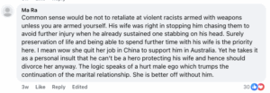 One wrote that pursuing armed racists was extremely risky, and his wife was right to stop him. Another thought that Zhou’s decision was influenced by patriarchal ego and that his wife deserved a better partner than him.