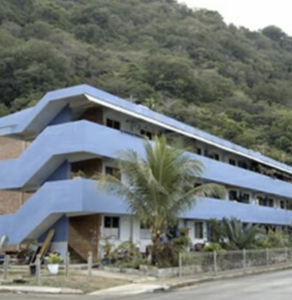 Five blocks still stand today. These three- to four-story buildings are reminiscent of old Singaporean HDB areas. The flat roofs, pastel-coloured walls and long corridors are all familiar. Today, about 100 families live there.
