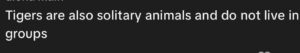 One commenter pointed out that tigers are solitary animals and do not naturally live in large groups.