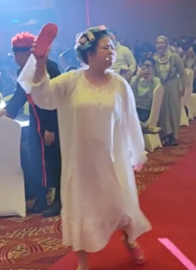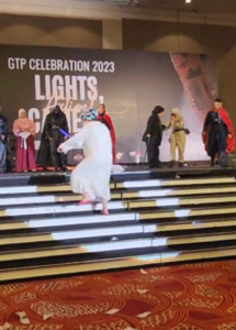 Karine remained in character as she walked to the stage. She gestured positively, took off her slipper as in the film, and imitated the well-known furious looks of the Landlady. With each step she made, the crowd got more excited due to her performance.