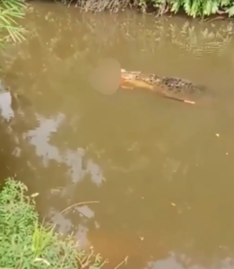 The following day, villagers could see a huge crocodile in the muddy water fluttering in the water. In one of the videos filmed by the locals, the animal raised its head above the water, and the body of the woman could be easily spotted in its mouth.