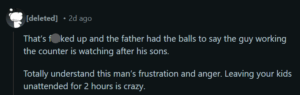Comments also condemned the father for allegedly treating playground staff as “temporary babysitters” and ignoring safety risks faced by unattended children in public spaces.