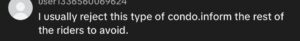 “I usually reject this type of condo. Inform the rest of the riders to avoid.”