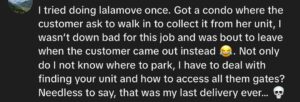 However, in the delivery notes, the customer allegedly stated that the intercom had been removed by the landlord and instructed him to “follow people in” before hanging the groceries on the gate instead of placing them on the floor.