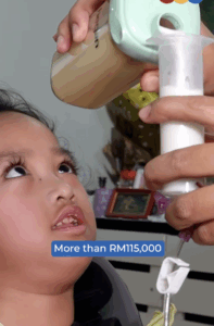 Tube feeding, oxygen support, and medication are her daily companions. The family has to spend about 3,000 ringgit a month on treatment, equipment, therapy, and hospital visits. Every year, her body’s storms become more severe, so doctors quickly recommended brain stimulator surgery.