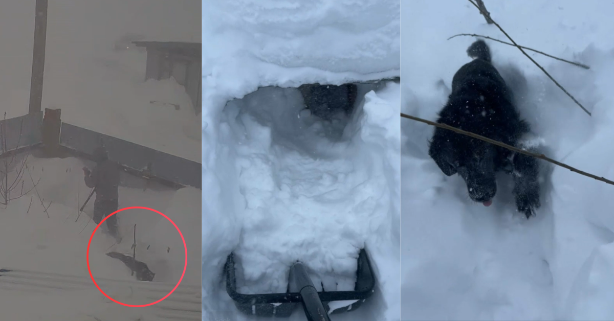 Later video shows the lucky pup resting at home, clearly none the worse for wear after her snow ordeal.