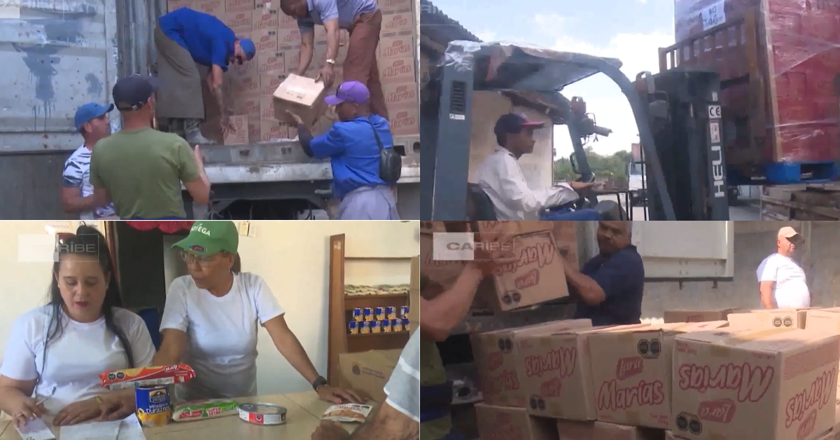 Footage shows several people unloading boxes of food from transport vehicles. Some of the donations are intended for pregnant women, older adults and children, according to authorities.