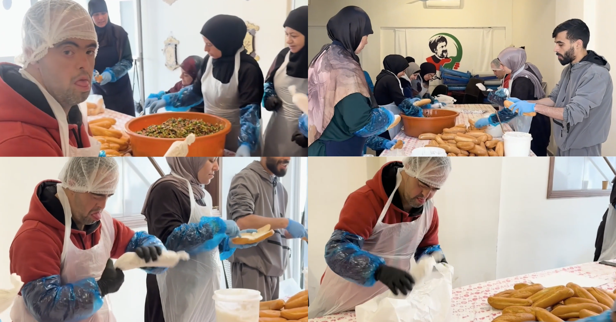 A young Lebanese volunteer with Down syndrome is helping prepare meals for families displaced by the ongoing conflict, working at a charity kitchen in Beirut.