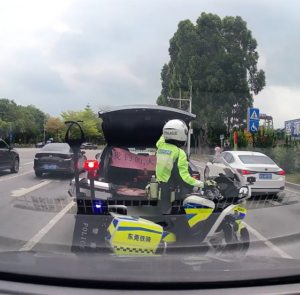 Dongguan is known as an industrial city with busy roads and heavy traffic flow. Incidents like this are rare, especially involving drivers stopping to display personal items during traffic signals.