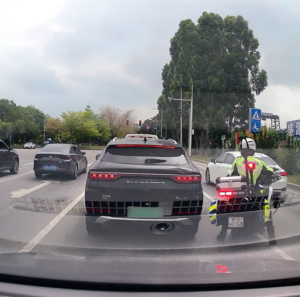 A driver in Dongguan, a city in south China’s Guangdong Province, drew attention at a busy road intersection after opening his car trunk during a red light. Inside the trunk was a large fish, which he appeared eager to show to other drivers nearby. The moment was later recorded on a dashcam and shared online.