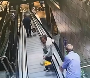 Quick Supermarket Rescue Saves Elderly Man From Dangerous Escalator Fall