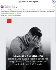 A young software professional has been the victim of a horrific scam in the hope of building a relationship through a dating app. The 22-year-old cloud engineer, a resident of the Ejipura area of Bengaluru, fell victim to a generative AI-powered sextortion scam.
