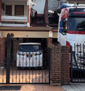 The prime mover stands next to a normal white car parked in the neighbor’s driveway, making the truck look even more enormous. For now, the truck remains a symbol of impressive driving ability in this quiet Ampang street.