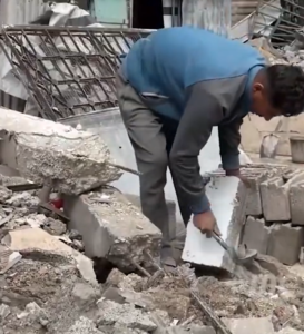 These improvised shelters are often located in highly dangerous areas. Many families build near the Yellow Line, a particularly perilous zone. Others reconstruct on sites such as the “Peace Project,” which had existed forty or fifty years before its destruction. Though these areas are now left with shattered walls and emptiness, residents remain resolute in staying.