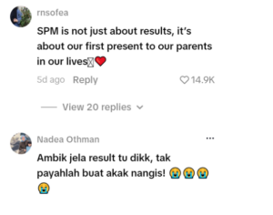 Another commented that SPM is not just an exam result; it is the first gift of life for parents. Another said that one cannot hold back tears after watching such a video.