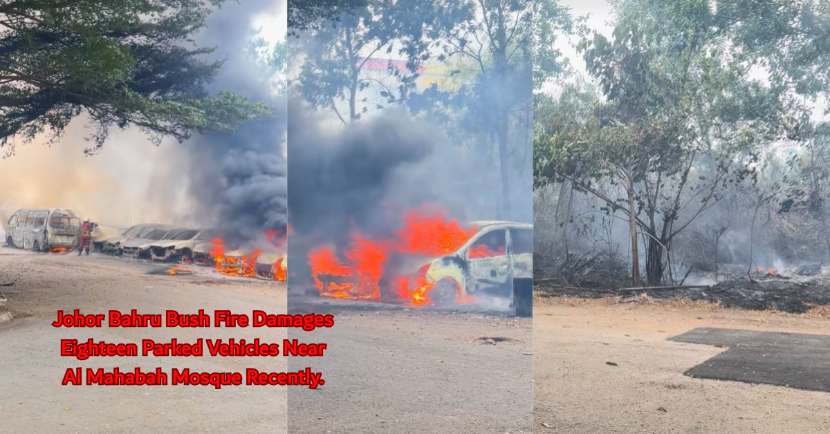 Mysterious Bush Fire Along Johor Bahru Mosque Leaves 18 Vehicles Damaged