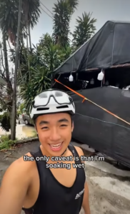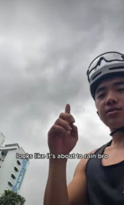 Although entering the narrow lane designated for bicycles there was a bit risky, he successfully crossed. Later, he also crossed Malaysian customs, although he got confused at times by entering the wrong lane. Finally, he said that it is possible to travel to JB on a foldable bike, but by the end of the journey, he was completely soaked.